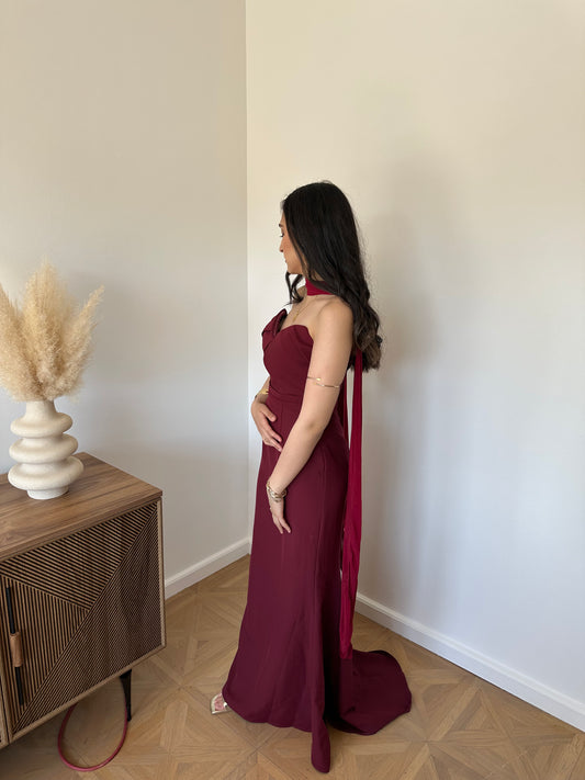 Robe longue bordeaux fluide – Élégante et simple pour soirée ou cérémonie