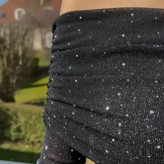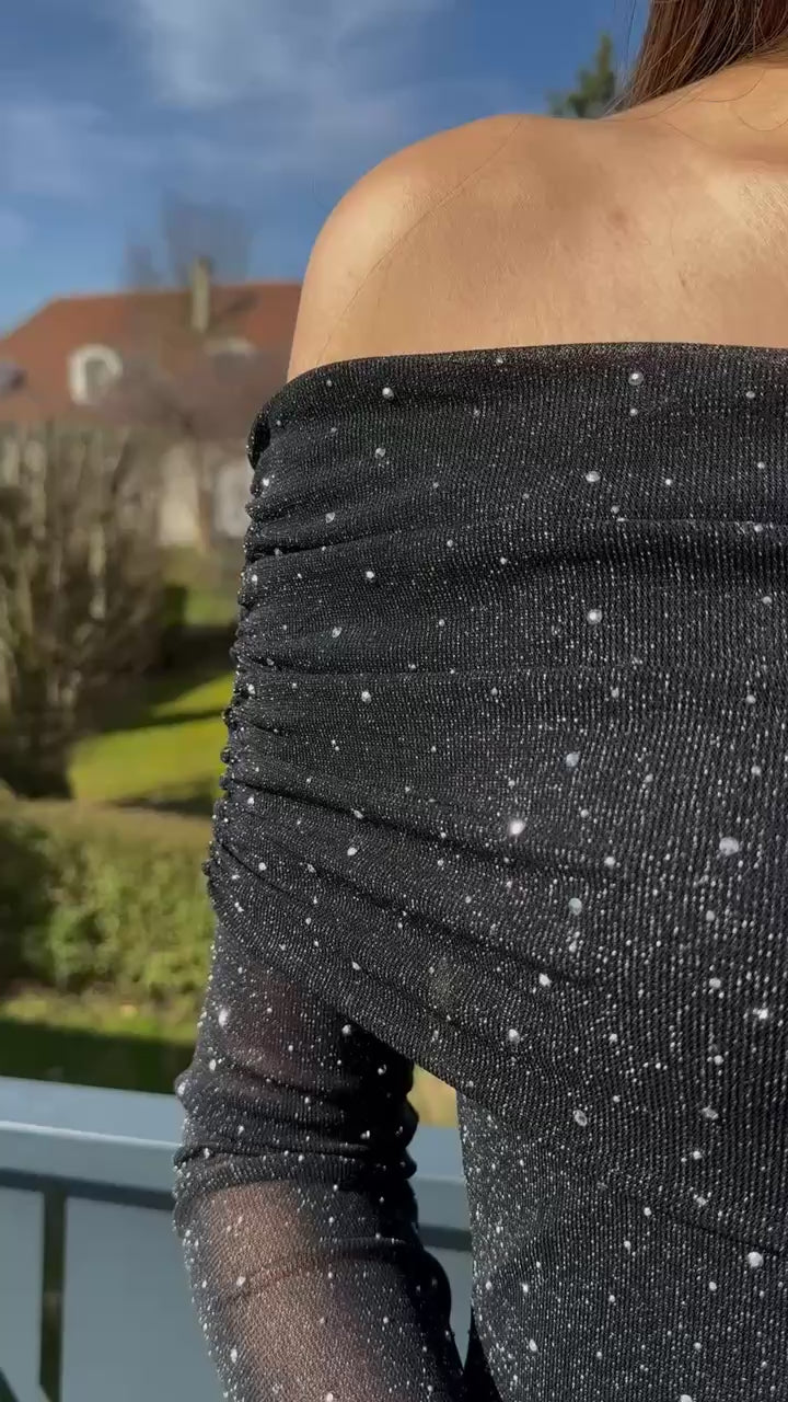 Robe longue noire pailletée, parfaite pour les soirées élégantes. Brillance subtile, coupe flatteuse et allure sophistiquée. Un classique glamour à avoir dans sa garde-robe
