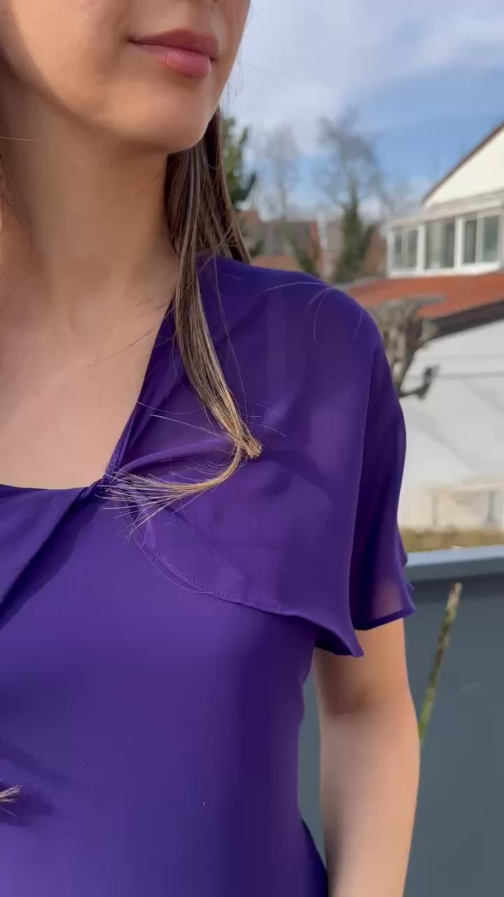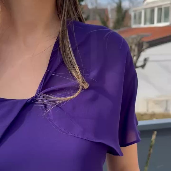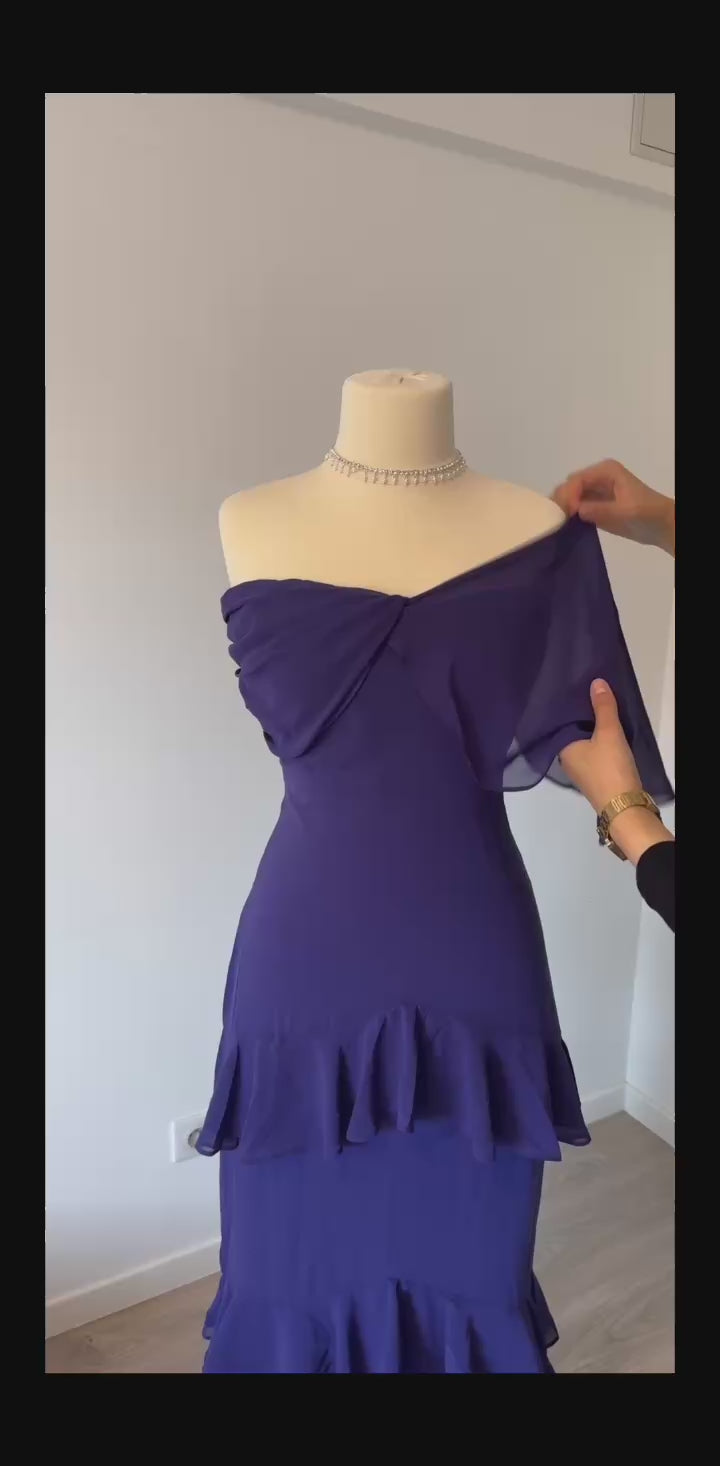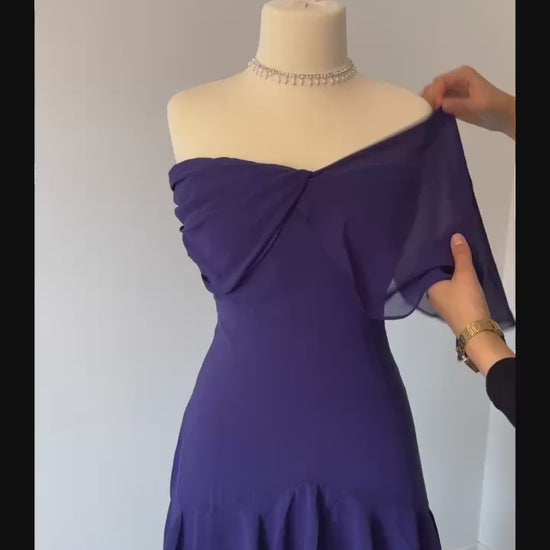 Robe de soirée longue mauve. Possibilité de la porter de plusieurs façon au niveau de la brettelle.